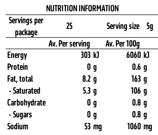 Slow cooked to perfection, our ghee is pure kitchen gold, nutty, and made the old school way. No additives, just 100% pure grass-fed butter ghee (cow’s milk fat).