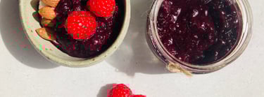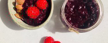 Mix yogurt with honey. Top with jam, nuts, and berries.