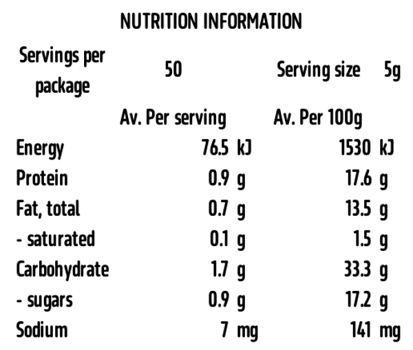 Paprika, coriander, cumin, chilli (mild) & pepper.